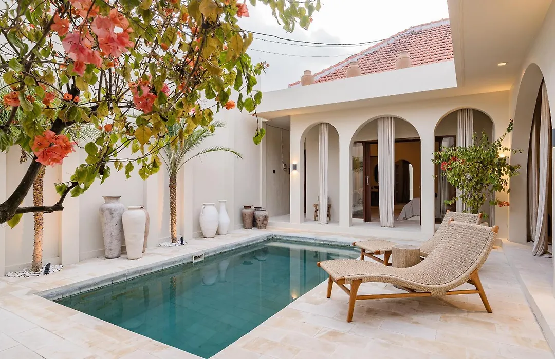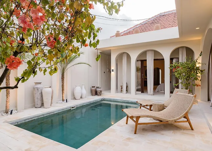 Localizada a aproximadamente 6 km da Rua Oberoi, a Villa Azizam - Free Gym & Sauna - Luxury 3Br Villa Canggu dispõe de piscina com banho turco, jacuzzi e sauna. Com acesso a terraço, esta vila está localizada a 15 minutos de carro de Clube de Praia Cocoon.
